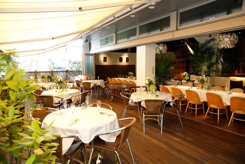 リゾートホテルの一階にあり、広々としたテラスが開放感抜群。